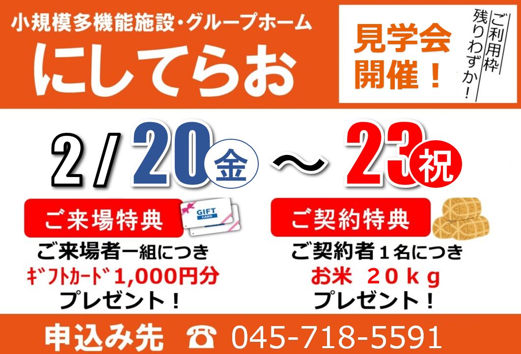 小多機にしてらお「見学会」開催(2/20(金)~23(祝))