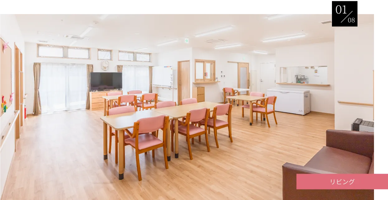 「泊まれる」「通える」安心の365日・24時間サービス共同生活を通じて、利用者様の心身の残存能力を生かすケアを行い、利用者様が自由に、自立した生活を営むことができるよう、ニーズに応じた支援をいたします。