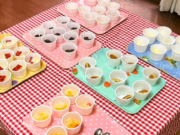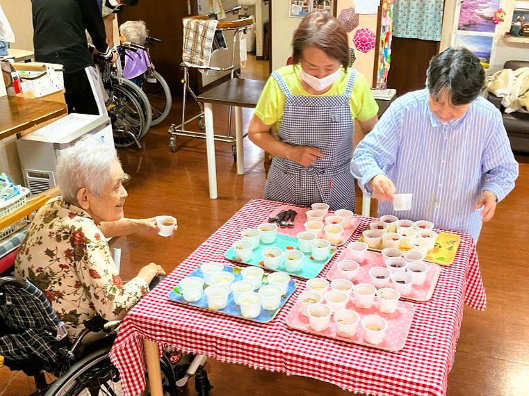 ケーキ、フルーツポンチ、どら焼きなど6種類の中から、利用者様にお好きなものを選んで