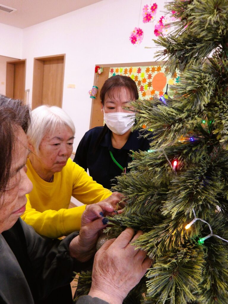 レクリエーションの一環としてクリスマスツリーの飾り付けを行いました。