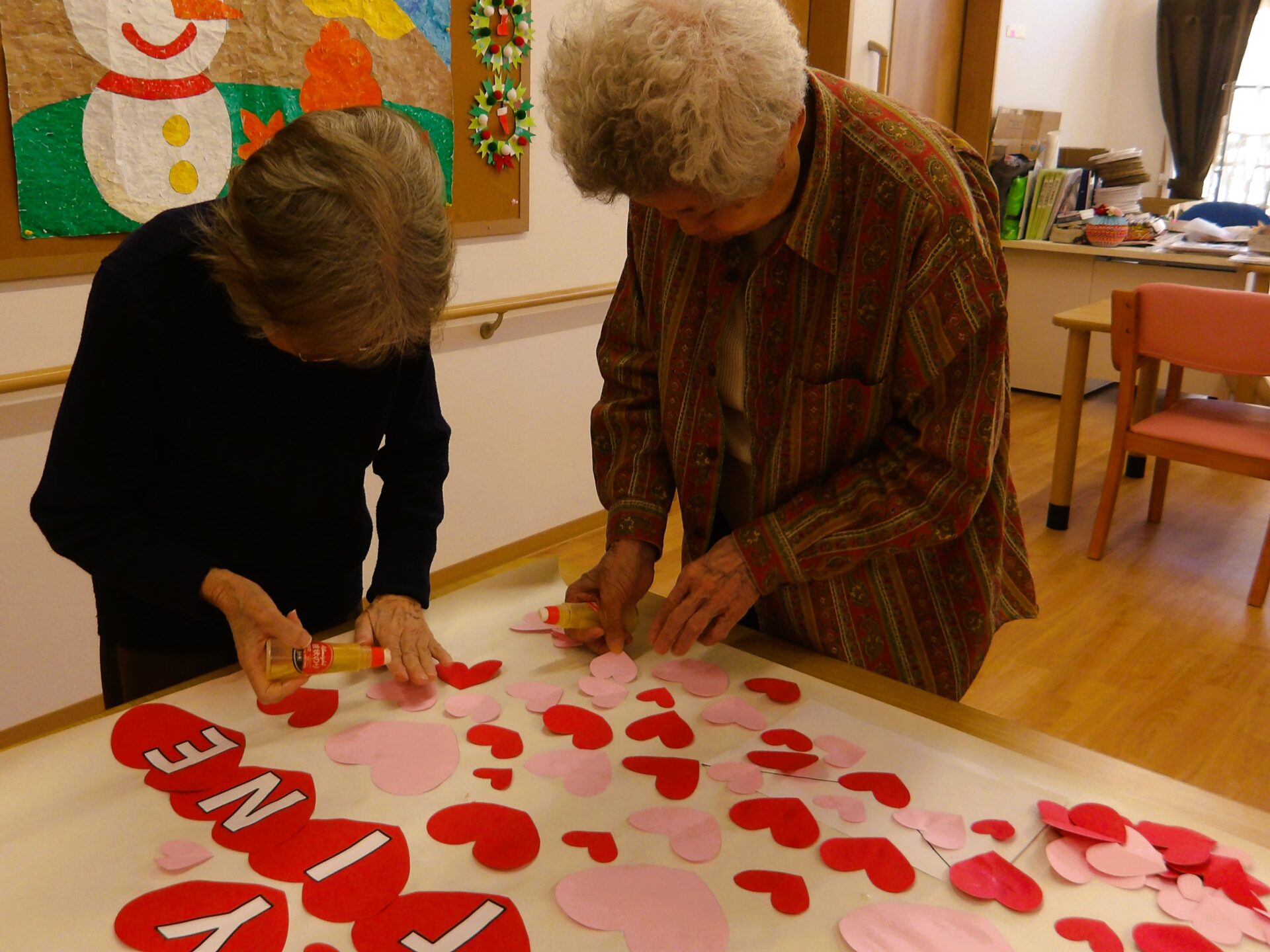 フロア装飾と2月のカレンダー制作を行いました。